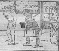 A la gare, M.Fenouillard s'adressa à un employé fort occupé à ne rien faire _ " Pardon, monsieur, si je vous dérange, dit-il; mais serait-ce un effet de votre complaisance de m'indiquer le premier train pour Bruxelles ?" _ "Voyez l'affiche", répond ce fonctionnaire avec le laconisme poli qui caractérise les employés de chemins de fer.