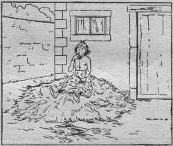 Heuresement pour Artémise, un fumier épais et moelleux se trouvait sous la fenetre et quand sa famille éplorée accourut pour ramasser au moins ses morceaux, elle la trouva suçant son pouce avec une parfaite insouciance.