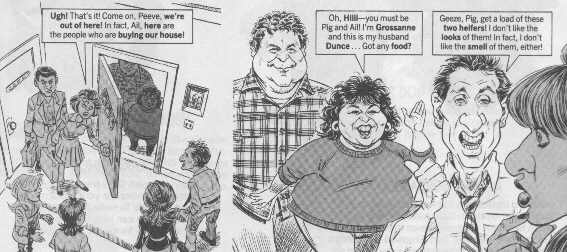 -Grossane " Ho vous devez être Pig et Ail, je suis Grossane et voilà mon maris Dunce.... Il y a à manger ?"